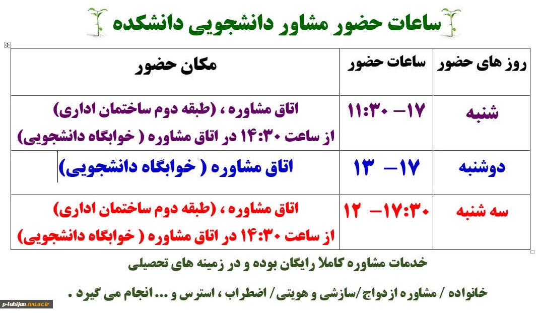 ساعات حضور مشاور در آموزشکده 2