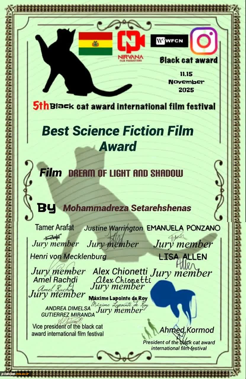 امتیاز دهید : جایزه بهترین فیلم کوتاه علمی تخیلی جشنواره بینالمللی گربهسیاه بولیوی (۲۰۲۵) 6 چهارشنبه 12 آذر 1404 ساعت 9:21
