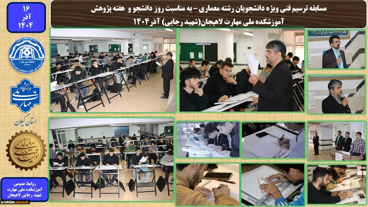 امتیاز دهید : مسابقه ترسیم فنی ویژه دانشجویان رشته معماری – به مناسبت روز دانشجو و هفته پژوهشآموزشکده ملی مهارت لاهیجان(شهید رجایی) آذر1404 2 سهشنبه 18 آذر 1404 ساعت 8:43