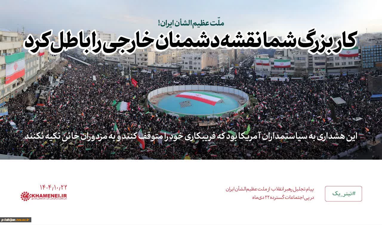 امتیاز دهید : گوشههایی از اجتماع مردم در پاسخ به اغتشاشات دیماه ۱۴۰۴ 2 سهشنبه 23 دی 1404 ساعت 9:41